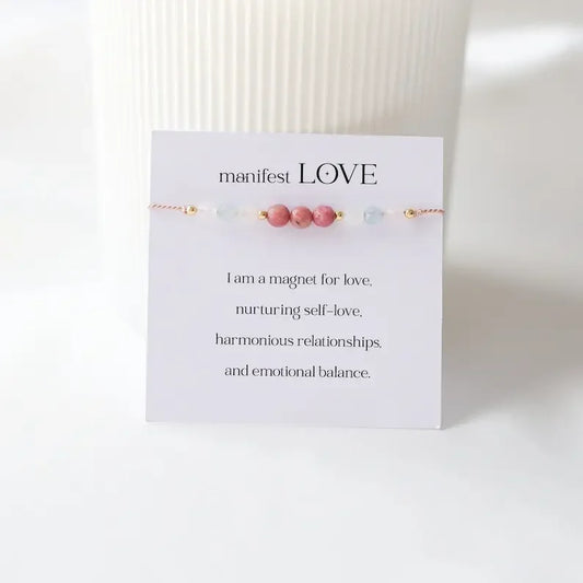 Love embodies crystal bracelet, attract love, self-love, rose quartz, aquamarine, moonstone, rose pyroxene